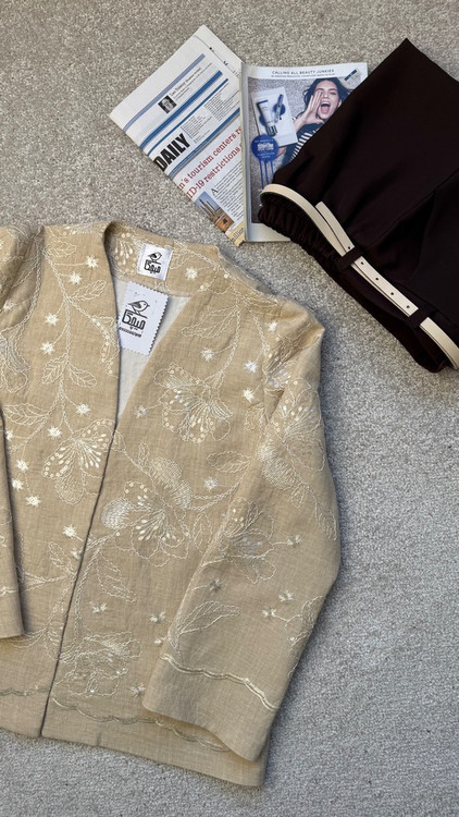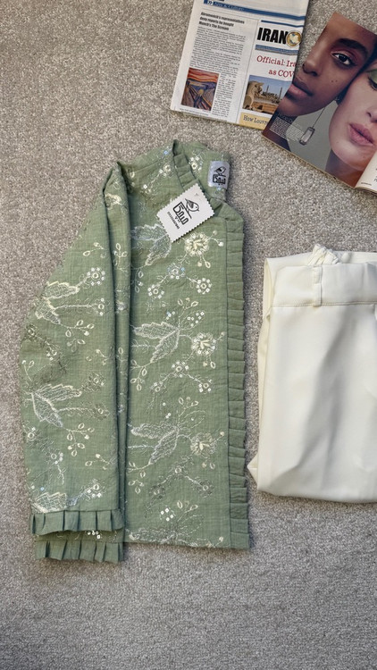 این کت زیبا ایستادگی خیلی خوبی داره و کل لباس لایی کوبی شده و طرح روش کار شده و خیلی شیکه که تو سایز بندی براتون تولید شده